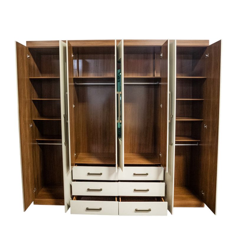 El armario Havana Master 8.6 en tonos Jatoba Arena ofrecen gran capacidad y diseño sofisticado. Con múltiples puertas, cajones amplios y espacios funcionales, es ideal para mantener tu ropa y accesorios perfectamente organizados. Su acabado cálido y elegante transforma cualquier dormitorio en un ambiente ordenado y acogedor.