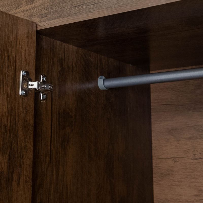 Descubre la Oportunidad de Transformar tu Espacio con Nuestros Armarios. El Armario Lima en color Castaño es una elección sofisticada y funcional para tu espacio de almacenamiento. Cuenta con un espejo incorporado y patas a juego, este armario combina estilo y practicidad en un diseño elegante. Foto referencial, tono puede variar. Producto no viene ensamblado, ni armado.