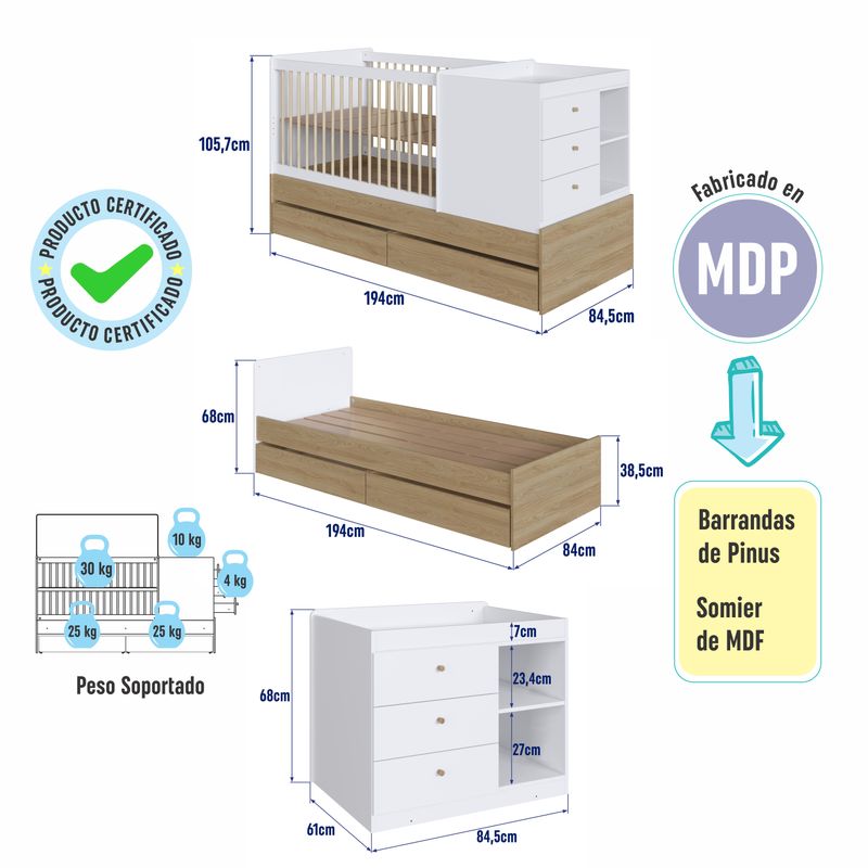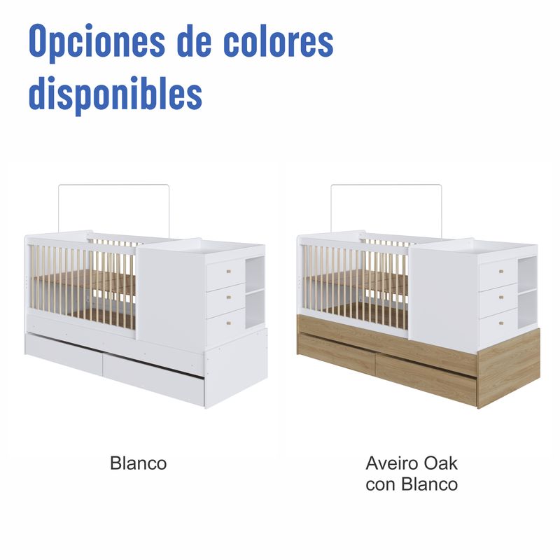 Cuna Cama Multifuncional Nido Con Cajones | Bi Color Roble Aveiro / Blanco