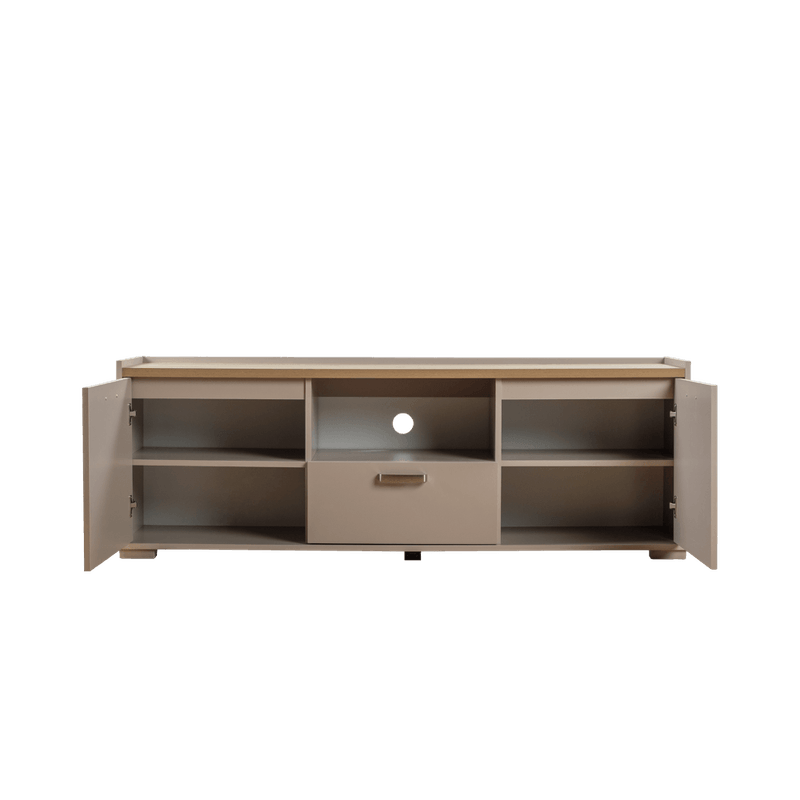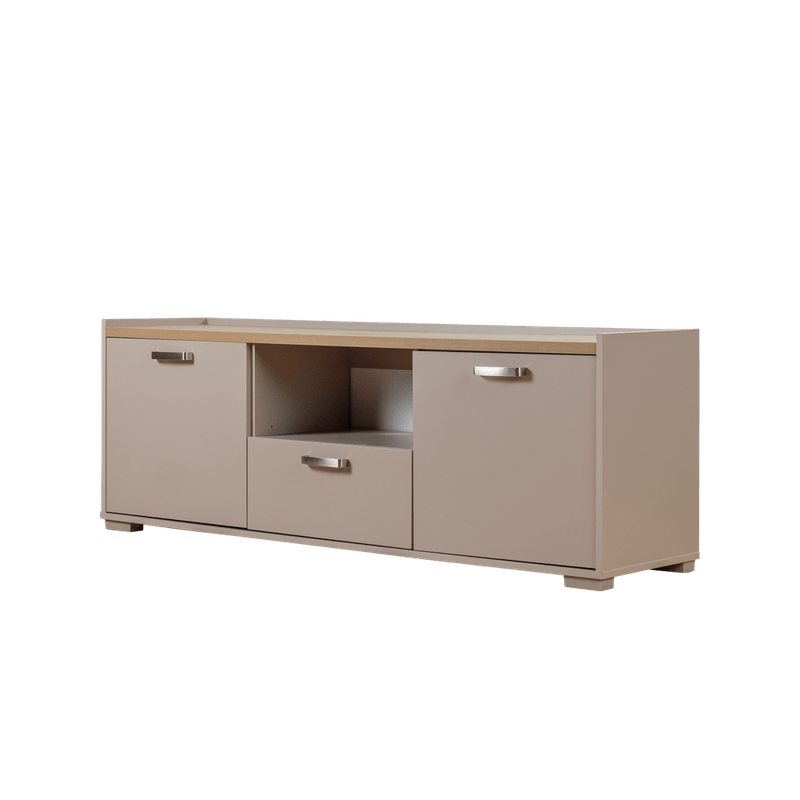 La mesa de tv Alina es perfecta para complementar el espacio de entretenimiento de tu hogar. Su diseño elegante y compacto se adapta a cualquier estilo de decoración, mientras que su amplio espacio de almacenamiento te permite mantener tu sala de estar ordenada y libre de desorden.