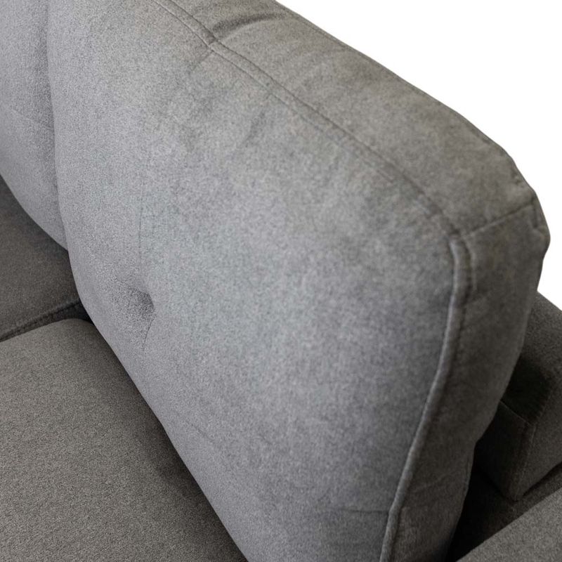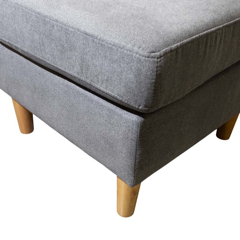 Transforma tu espacio con el Sofá Seccional Delki Esquinero. Adaptable a izquierda/derecha, incluye otomán independiente y práctico bolsillo de resorte. Elegante pata de madera de caucho y lujosa tela de gamuza en gris. Tu comodidad, tu estilo con sofás de El Bosque Mueble.